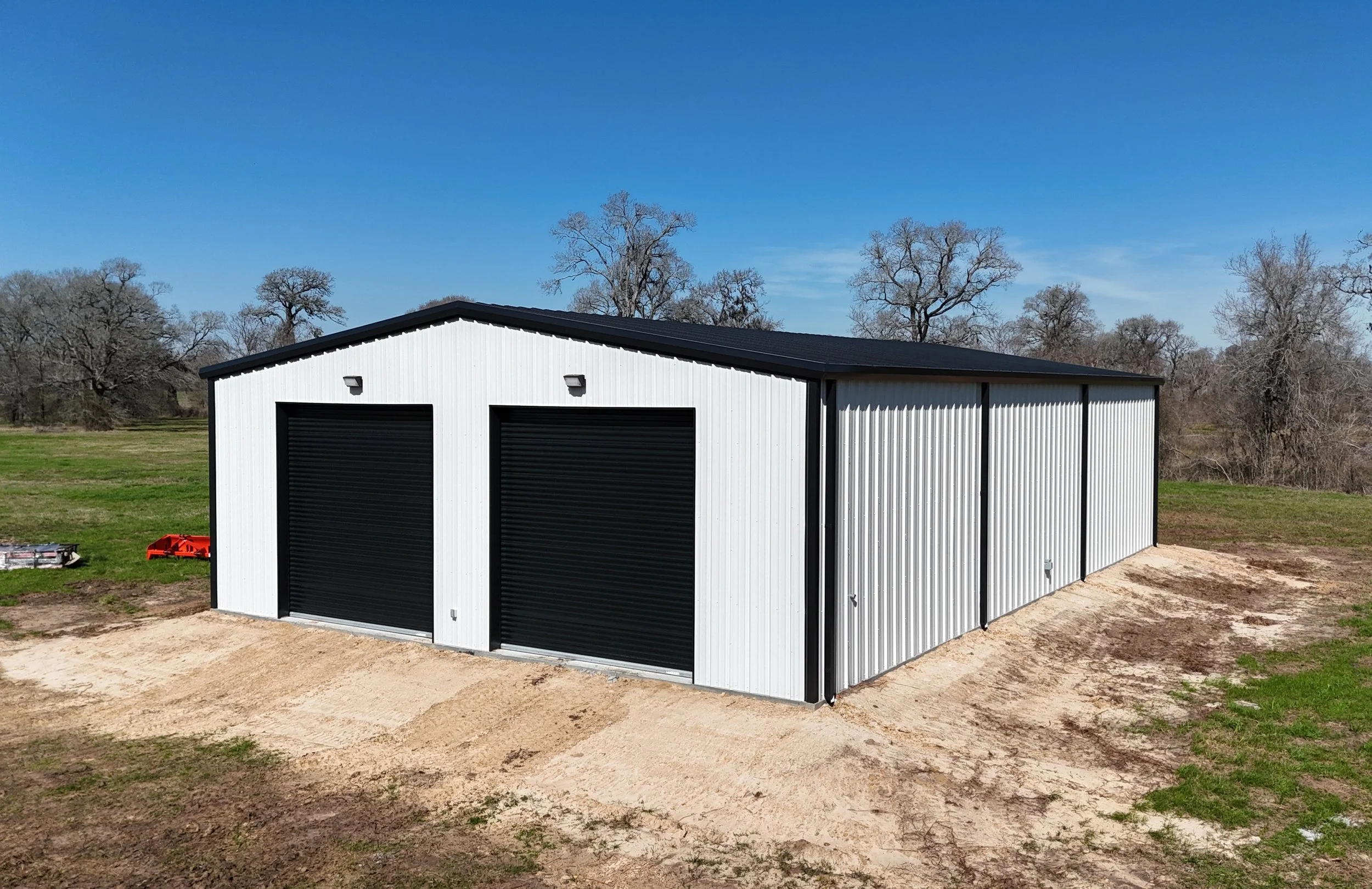 This custom 40’ x 60’ x 16’ metal building in Fulshear, Texas was designed to give new landowners a dedicated space to store equipment, recreational vehicles, and everything needed to fully enjoy their property. With a 16’ eave height and 2/12 roof pitch, the structure provides the clearance and interior volume needed for larger machinery, trailers, and weekend toys.